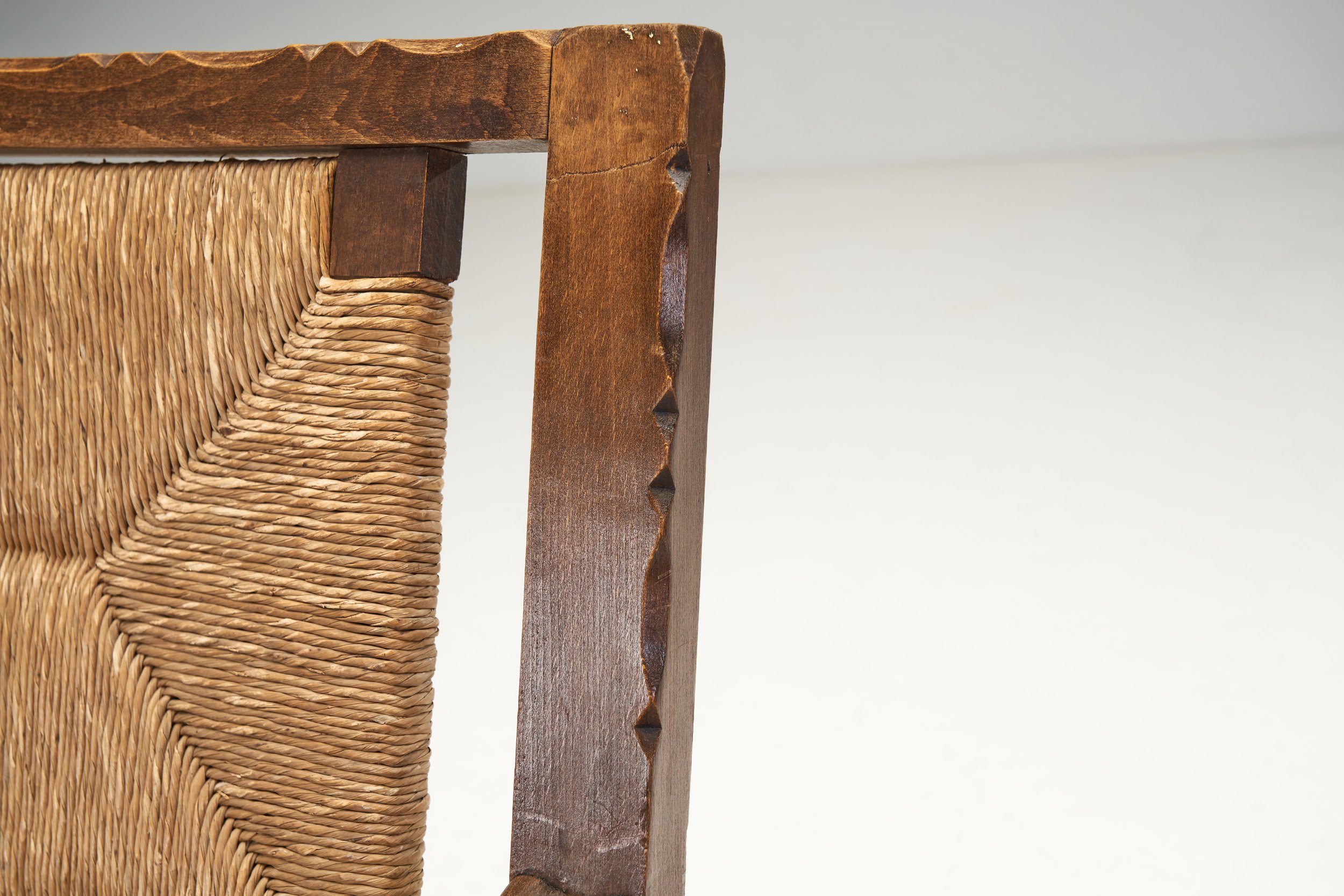 Mid-Century Handcrafted Wood and Woven Straw Armchairs, Europe ca 1950s