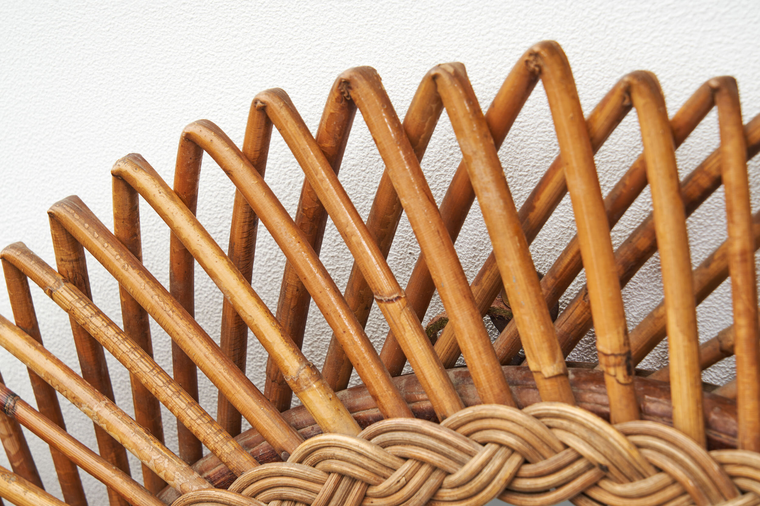 In good vintage condition. Wear consistent with age and use. The rattan has some marks and cracks.