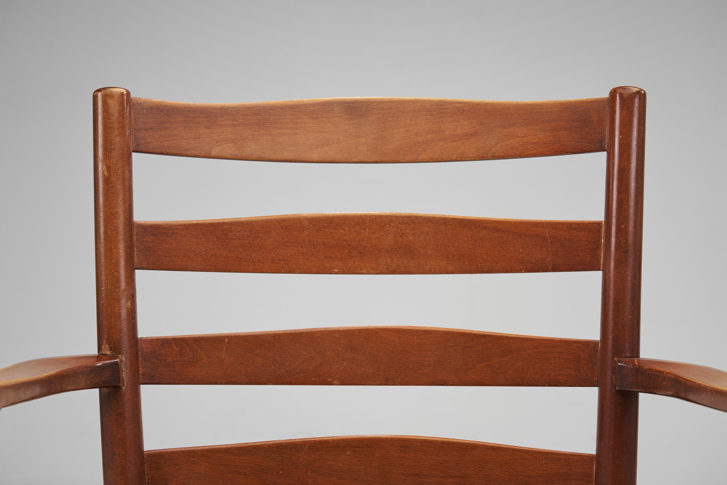 The works of master cabinetmakers – such as this chair – are of the highest quality, both in terms of materials and craftsmanship. Cabinetmakers take the art of working with wood one step further, and focus on the finer details of what can be created with the material. Therefore, it comes as no surprise that numerous master cabinetmakers are part of the renowned Danish Culture Canon (Danish: Kulturkanonen). The canon contains no more than 108 works of cultural excellence, based on works with a useful function and that are still recognizable today. This small armchair is the perfect illustration of Danish design, and the work of a true cabinetmaker. ~H.