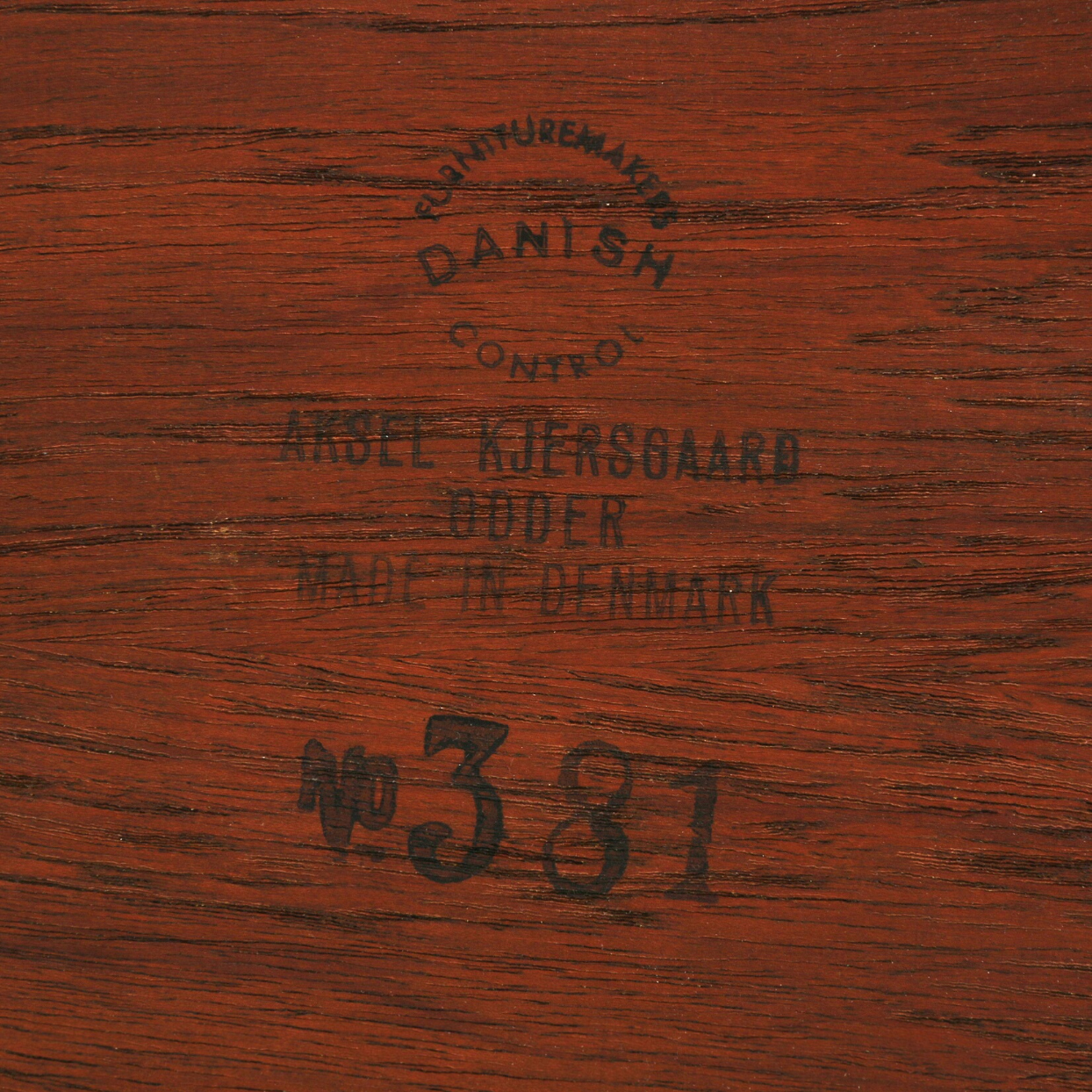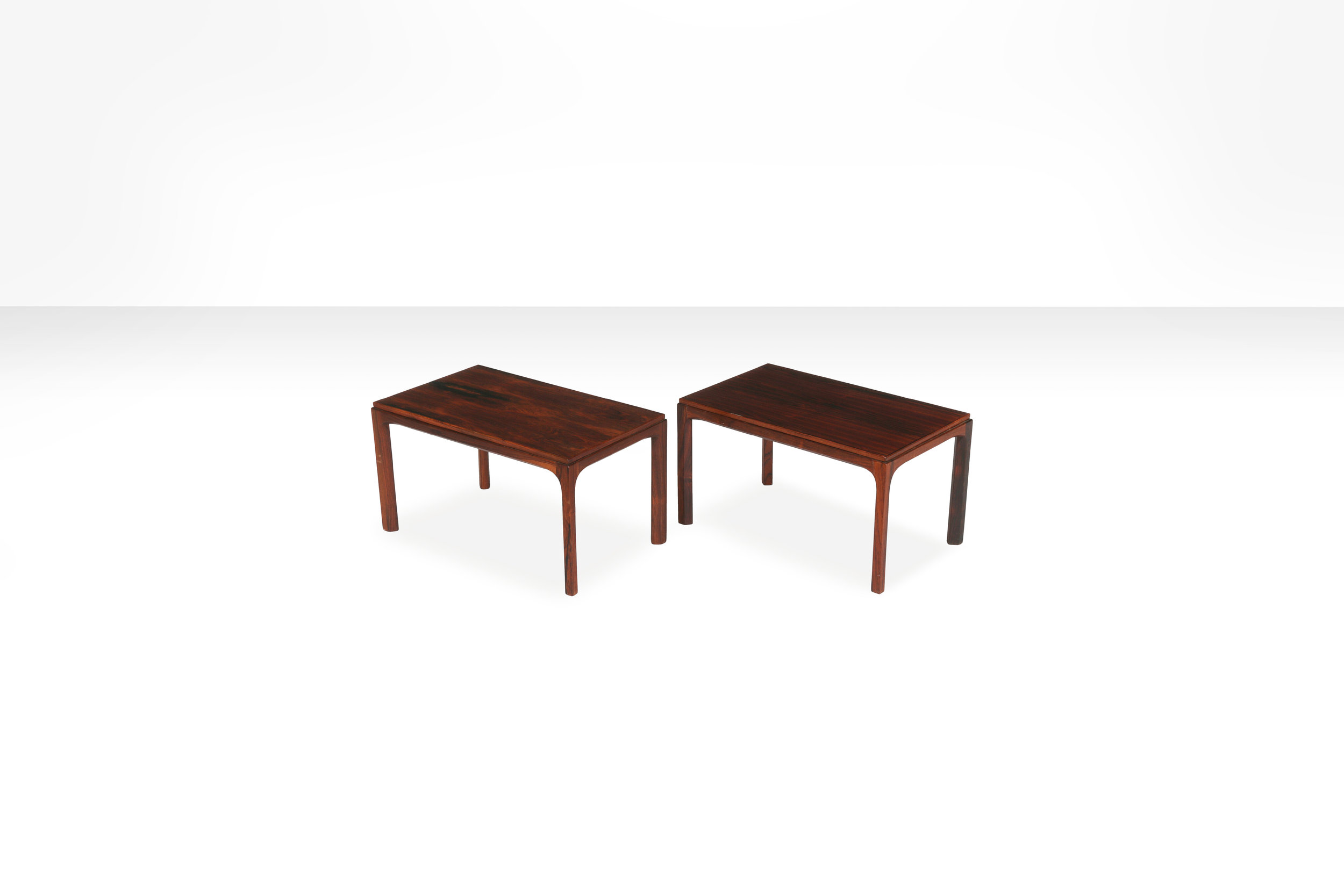A pair of Kai Kristiansen: rectangular side tables with profiled legs. Manufactured and stamped by Aksel Kjersgaard , Denmark, ca 1960s.