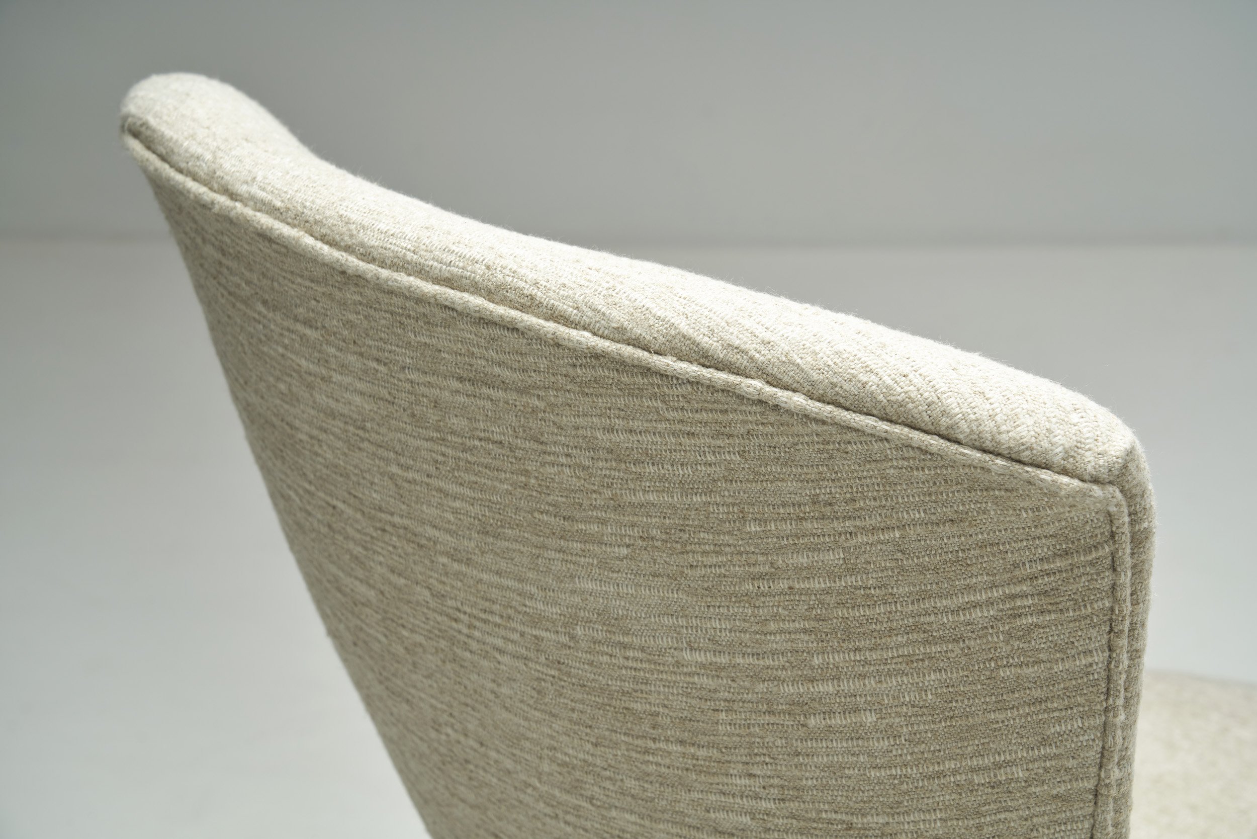 In good vintage condition. Wear consistent with age and use. The chairs have been reupholstered recently in premium bouclé fabric. Each of our items can be re-upholstered by our in-house atelier in a fabric of choice. Please reach out for more information.