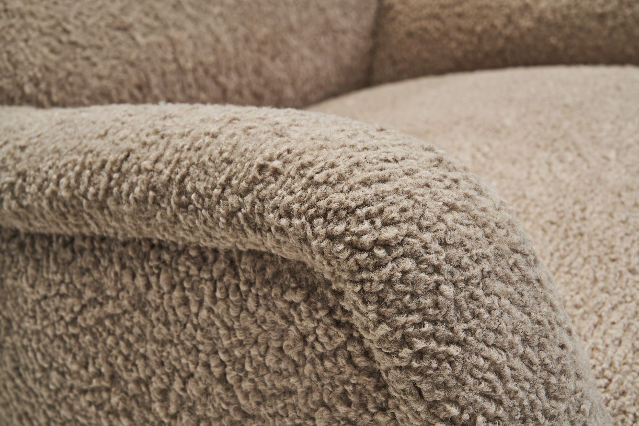 The 1960s was a time of radical change, and this dynamism was reflected in the furniture design of the era as well. European designers sought to break away from the traditional and embrace bold, cosy shapes. These lounge chairs are no exception. Their stylish form is characterized by open, inviting lines, and soft, round edges. This design approach emphasized comfort and relaxation, a response to the desire for a more laid-back lifestyle and a rejection of the stiffness of earlier decades. The dark stained oak legs add a touch of sophistication and warmth to the chairs. What makes these legs particularly noteworthy is their functionality: gently splayed, they not only contribute to the chairs' stability but also provide stark visual contrast to the soft, textured bouclé upholstery. The combination of oak's natural beauty and the geometric allure of the bouclé fabric created an enchanting juxtaposition.